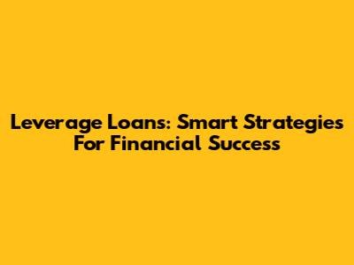 Leverage Loans: Smart Strategies For Financial Success