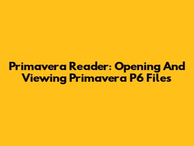 Primavera Reader: Opening And Viewing Primavera P6 Files