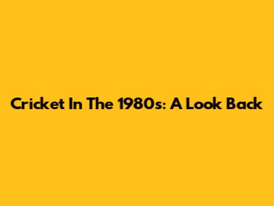Cricket In The 1980s: A Look Back