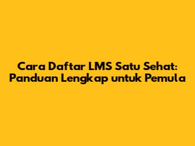 Cara Daftar LMS Satu Sehat: Panduan Lengkap Untuk Pemula