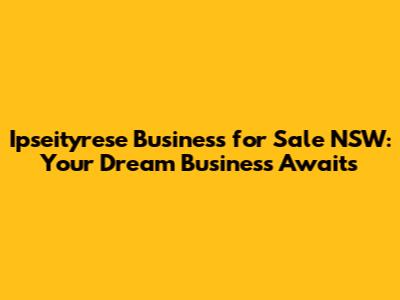 Ipseityrese Business For Sale In NSW: Your Gateway To Success