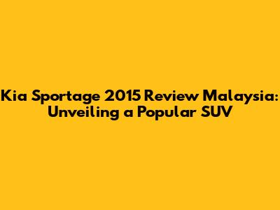 Hey guys! Let's dive into a review of the 2015 Kia Sportage in the Malaysian market. This SUV has been a popular choice for families and individuals alike, offering a blend of style, practicality, and features. In this in-depth review, we'll explore everything from its design and performance to its features and overall value. Buckle up, and let's get started!