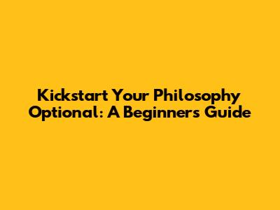 Kickstart Your Philosophy Optional: A Beginner's Guide