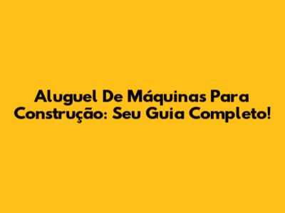 Aluguel De Máquinas Para Construção: Seu Guia Completo!
