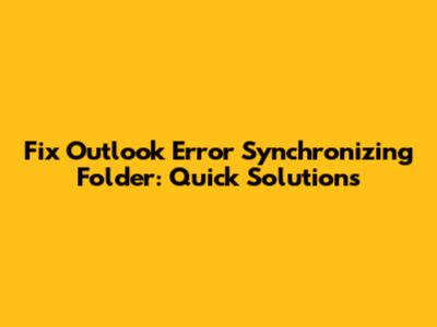Fix Outlook Error Synchronizing Folder: Quick Solutions