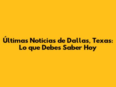 Últimas Noticias De Dallas, Texas: Lo Que Debes Saber Hoy