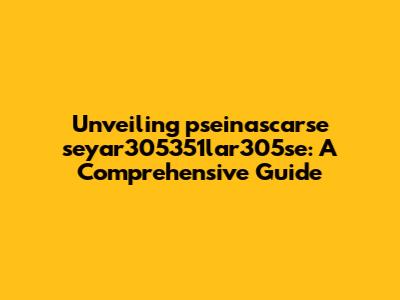 Unlocking The Mysteries Of Pseinascarse Seyar305351lar305se